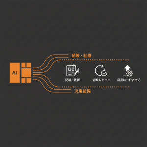 | 5. 運用定着・改善 | ユーザー研修、マニュアル作成、ヘルプデスク構築、効果測定、定期レビュー | 現場主導のトレーニング、Q&A体制、定期レビューと改善サイクルの確立、運用データに基づく最適化 |