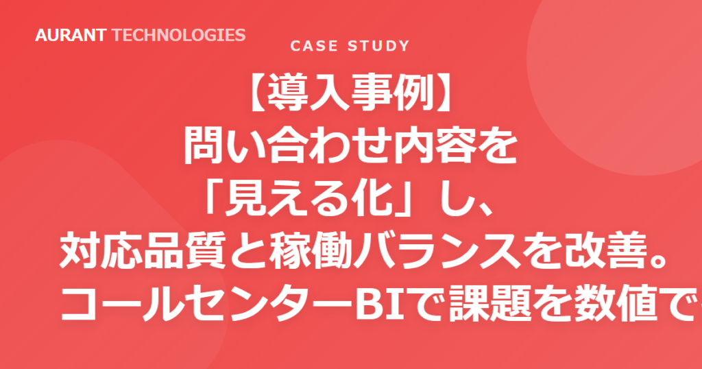 【導入事例】問い合わせ内容を「見える化」し、対応品質と稼働バランスを改善。コールセンターBIで課題を数値で把握した某サービス企業の導入の裏側