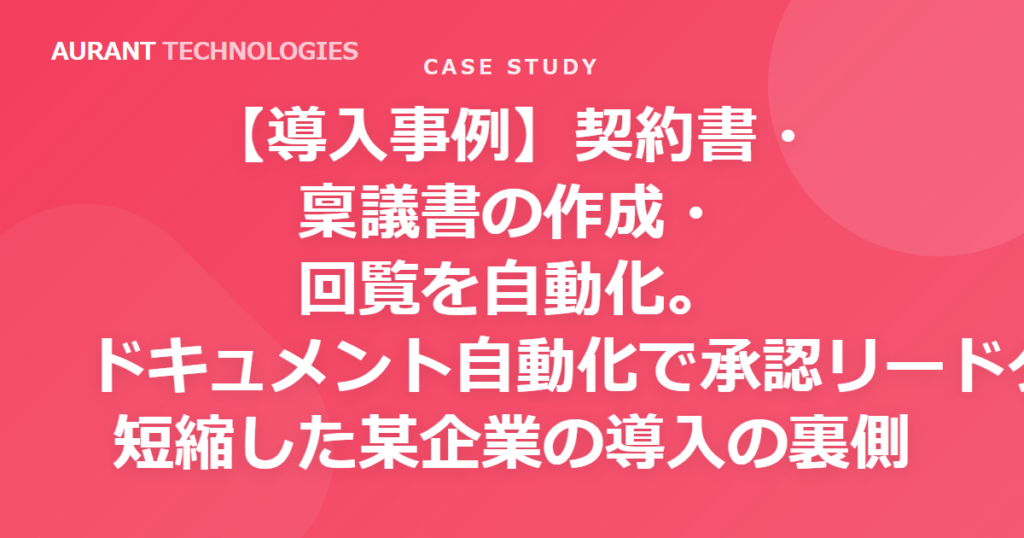【導入事例】契約書・稟議書の作成・回覧を自動化。ドキュメント自動化で承認リードタイムを約40%短縮した某企業の導入の裏側