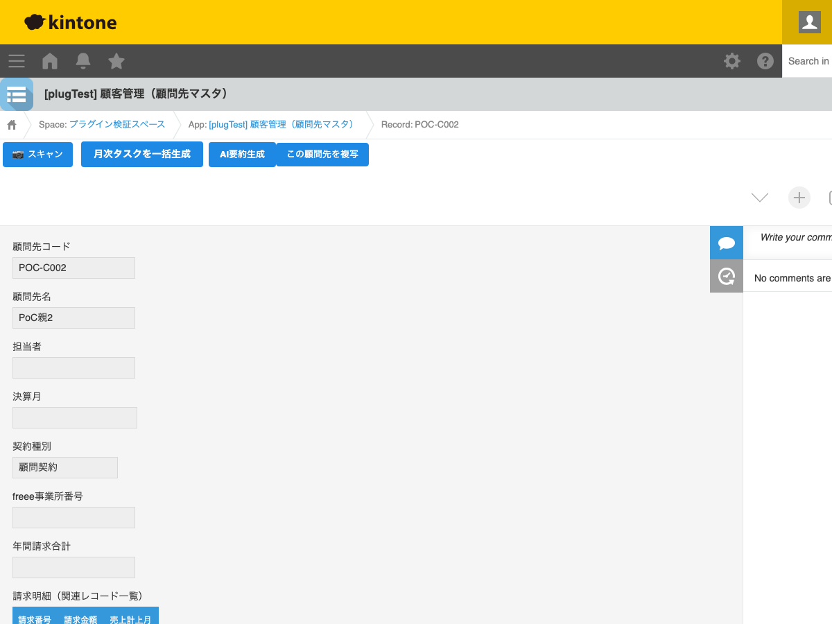 顧客名から AI Web 検索で企業情報(法人番号 / 所在地 / 代表者等 15 項目)を自動取得し、kintone レコードに書き込みます。顧客マスタの初期入力・品質向上を短時間で実現。