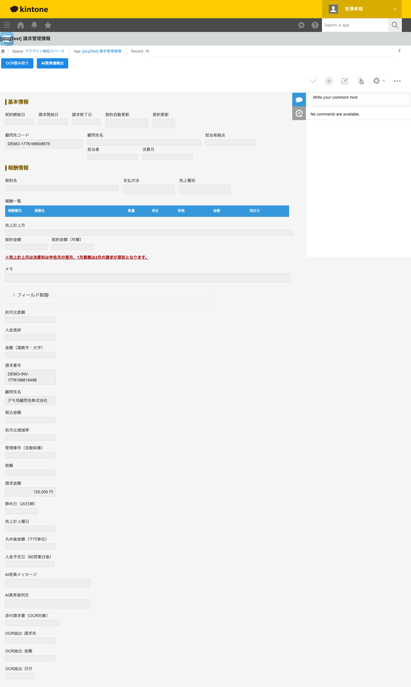 kintone のレコード保存・閲覧時に、同一キー(顧問先コードなど)の過去レコードと比較し、閾値(%)を超える差異があれば AI(Anthropic Claude / OpenAI GPT / Google Gemini)で原因候補を推定し、警告メッセージを指定フィールドに書き込むプラグインです。