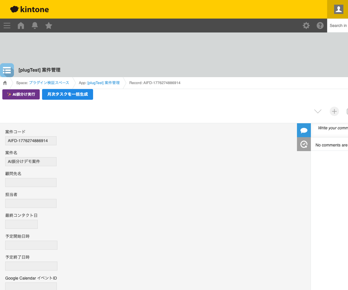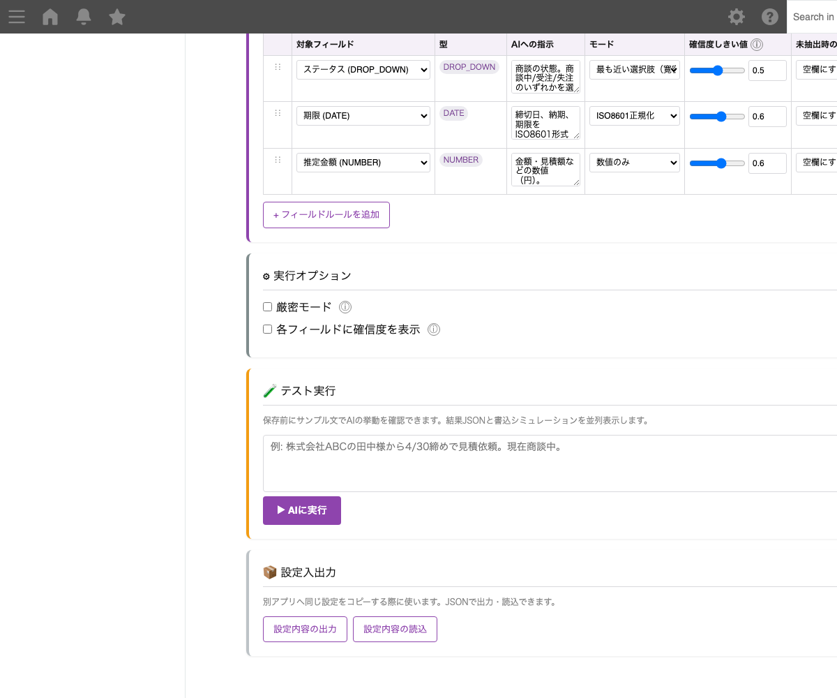 文章フィールドを AI が解釈し、カテゴリ・担当者などの分類フィールドへ自動セット。