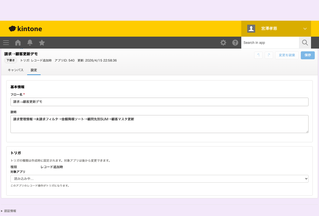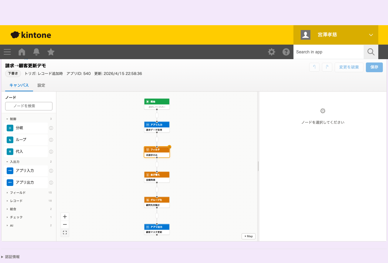 ビジュアルキャンバスで kintone レコードパイプラインを組み立てるワークフロー自動化基盤。
