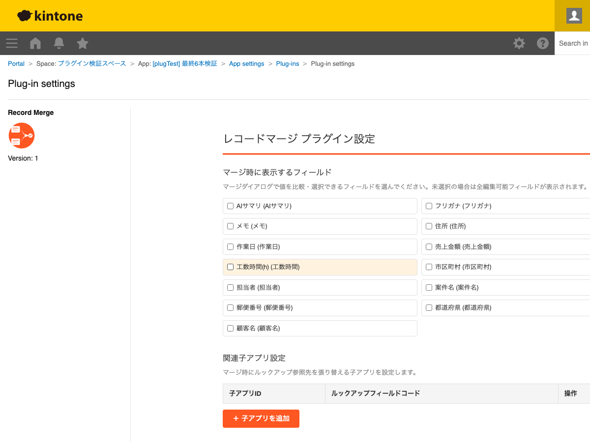 重複レコードを 1 つに統合し、関連子アプリのルックアップ参照先も自動で張り替える kintone プラグイン。顧客名寄せなど、マスタ統合作業の工数を大幅削減。